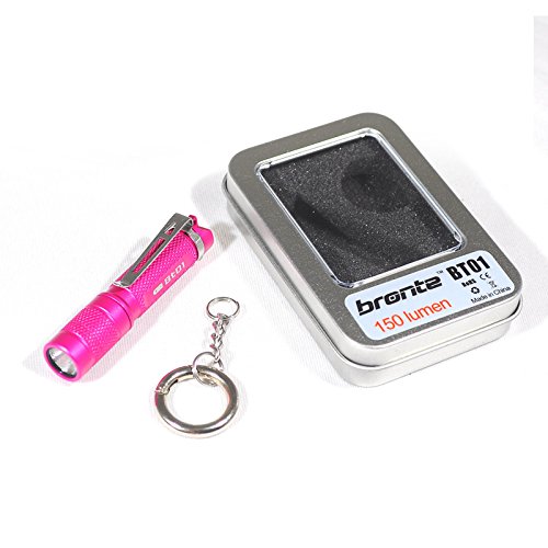 Red Color Bronte BT01 150 Lumen CREE XP-G2 LED Mini Keychain Flashlight with reversible clip, Powered by 1AAA battery, IPX-8 Waterproof, 4 Modes from Firefly to Strobe