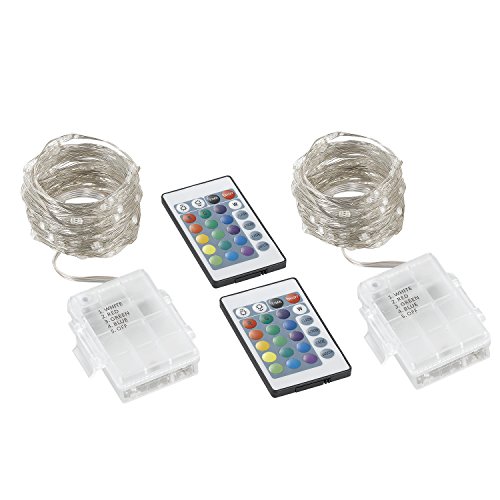 LEADO 2 Set LED String Lights 16 Colors 4 Modes Fairy Lights Waterproof Rope Lights Battery Operated 16FT 50LEDs Firefly Light with Remote Control for Bedroom Patio Christmas Decor