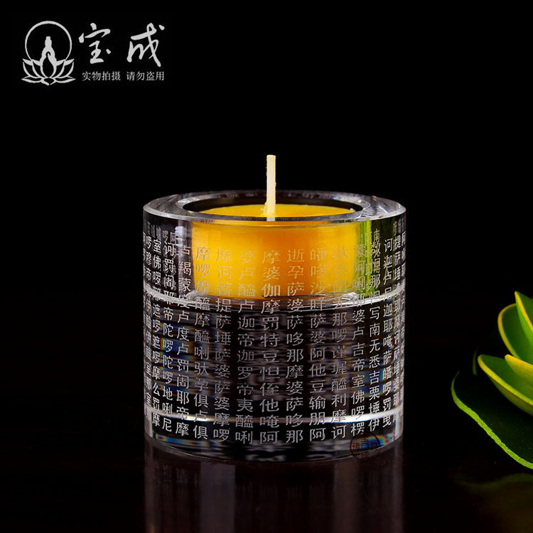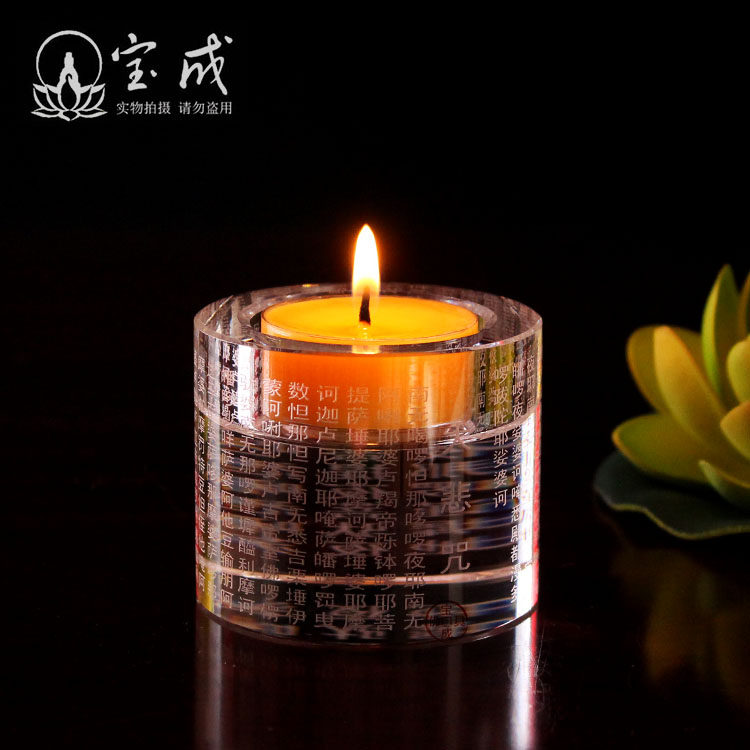 人造水晶制作,晶莹通透,高强度抗摔,表面激光雕刻字,字迹清晰不模糊,烛台晶莹剔透。