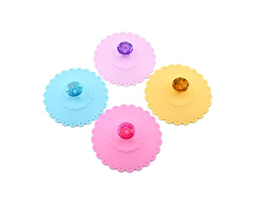 Teabloom Luxury Cup Lids (Set of 4) - Multicolored Diamond Lids for Mugs, Cups, Teapots - BPA-Free Food Grade Silicone
