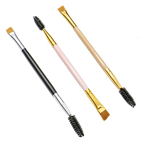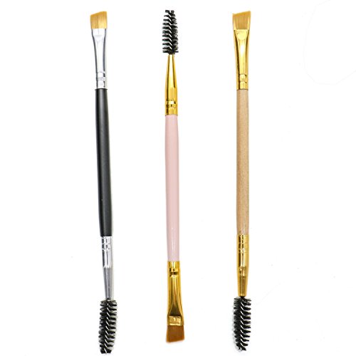 Rugjut Double Ended Eye Brow Brush Spoolie and Angled Eye Brow Brush Apply for Brow Powders Waxes Gels and Blends, Set of 3