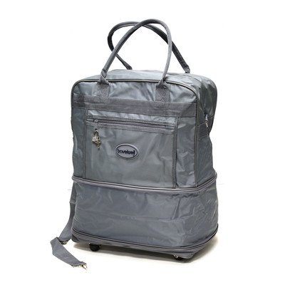 Studio : Goodhope Bags Publisher : Goodhope Bags Binding : Apparel Product Description 6009D-Grey Color: Grey Features: -Available in Black, Navy, Green, Burgundy and Grey.-Made of 70D nylon with PVC backing.-Expands twice at the bottom.-Four bottom caster rollers.-Dual handles.-Detachable shoulder strap. Dimensions: -Overall Dimensions:14.5-27 H x 16.4 W x 9.5 D. 0
