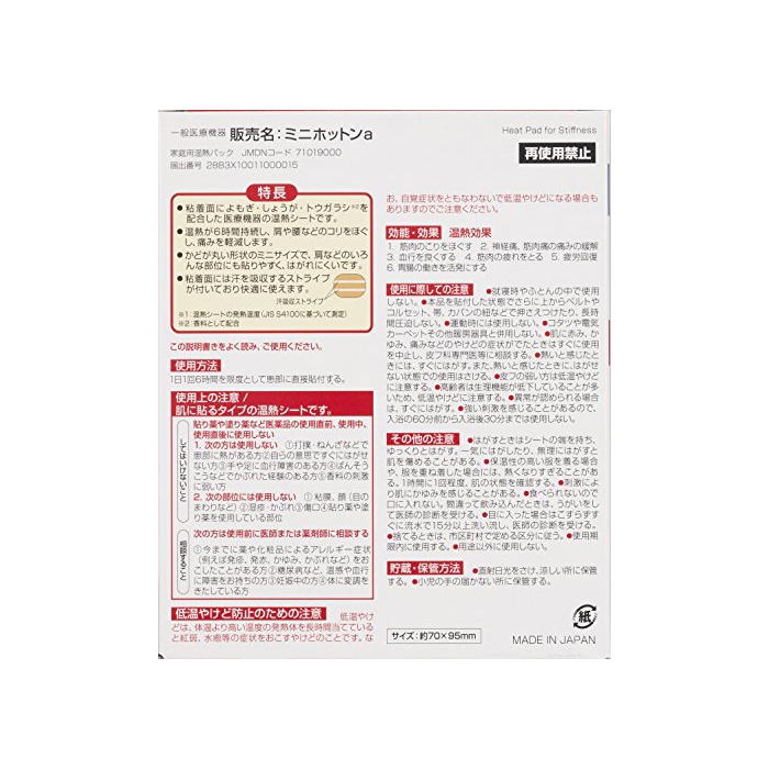 원본상품명: 血流改善 アンメルツ ?熱ミニホットン 7枚入