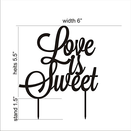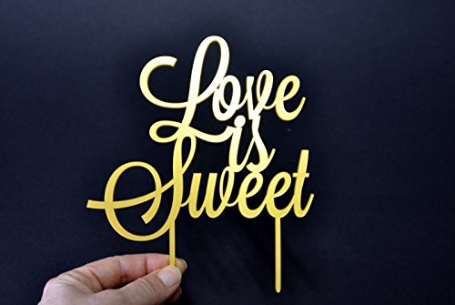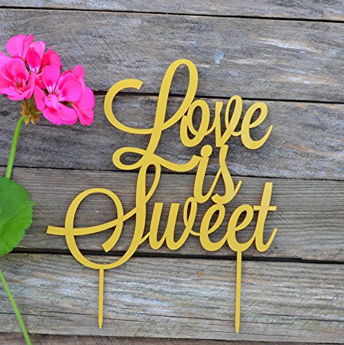 Cake Topper Love is sweet Wedding cake toppers for wedding decorations HappyPlywood (Width 6", gold)