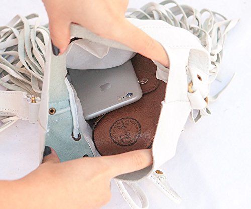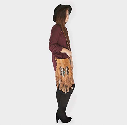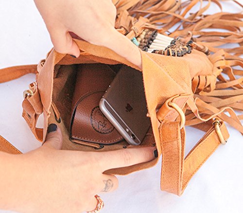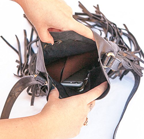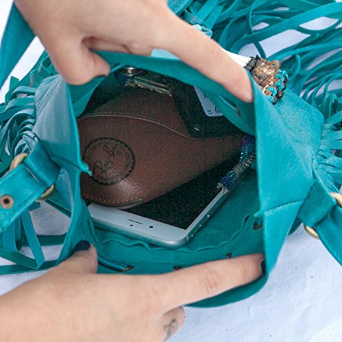 -. Brand : BohoBags Official -. Department : womens -. Feature : Perfectly Sized. Boho Vibes Guaranteed. / Extremely soft real leather. Adjustable shoulder strap. / Pouch style with zip closure. Perfect for daily activities as well as vacation (and fits all your necessities). / Decorated with embellishments and gorgeous fringes. / Measurements: ~48cm high (including tassels), ~28cm wide. -. ProductGroup : Shoes -. ProductTypeName : HANDBAG -. Title : Boho Bag Round S | Real Leather | Fringe Purse | Bohemian Bags