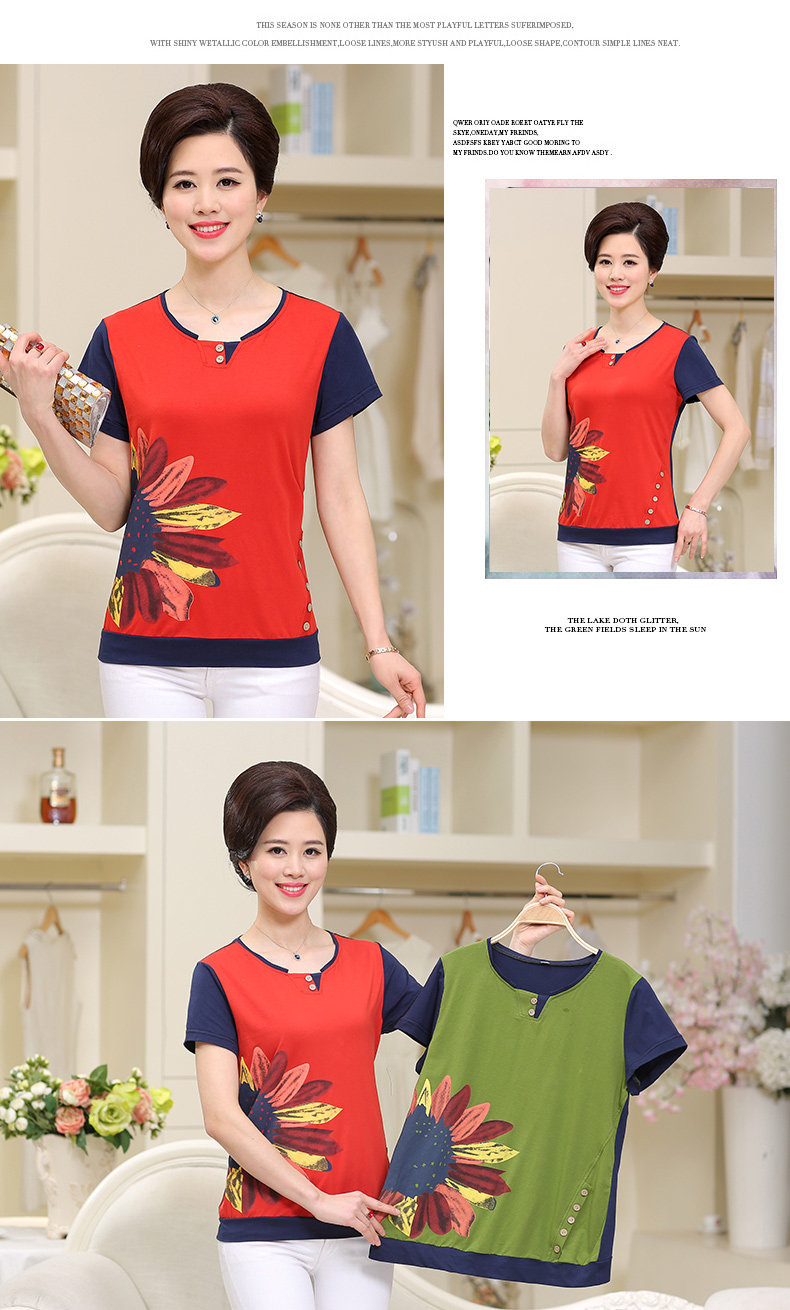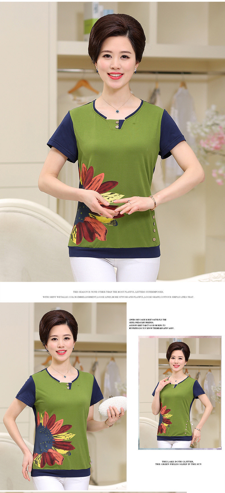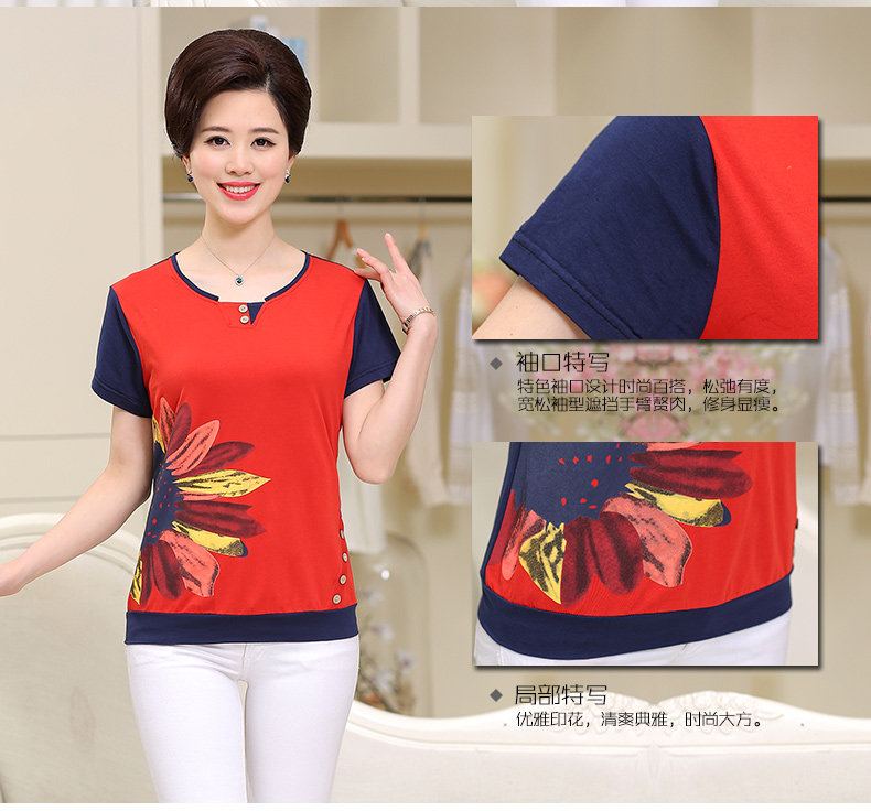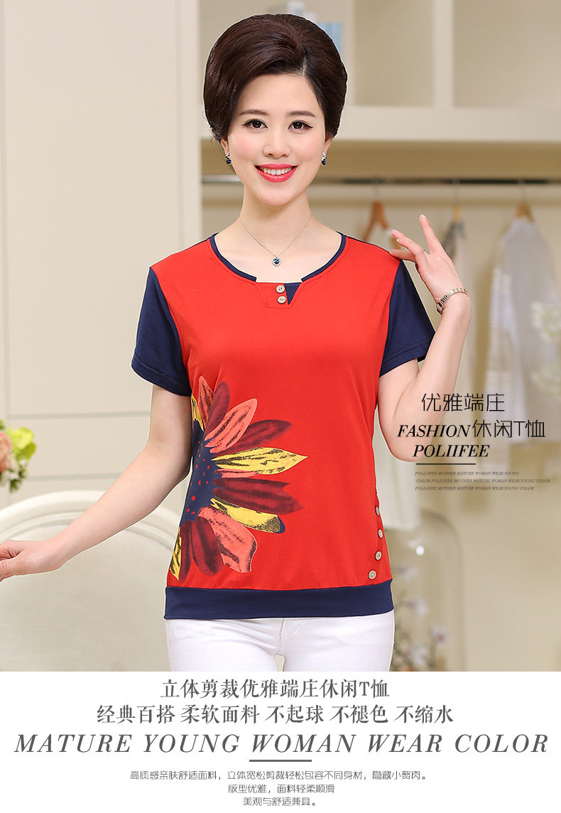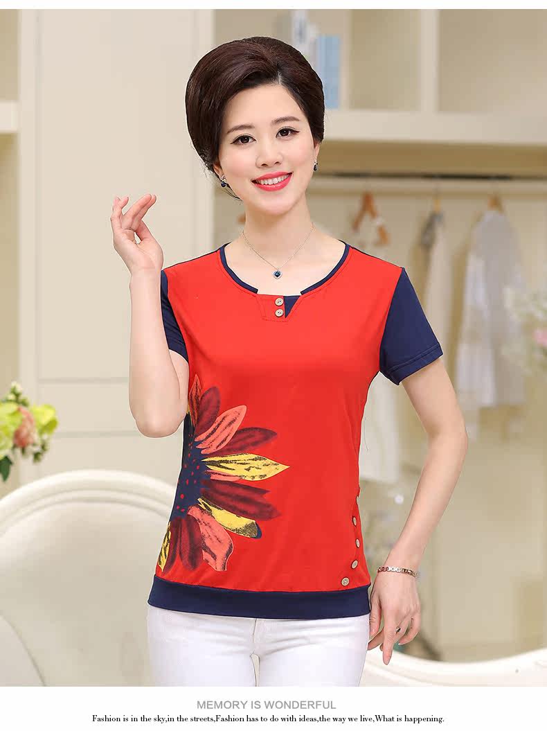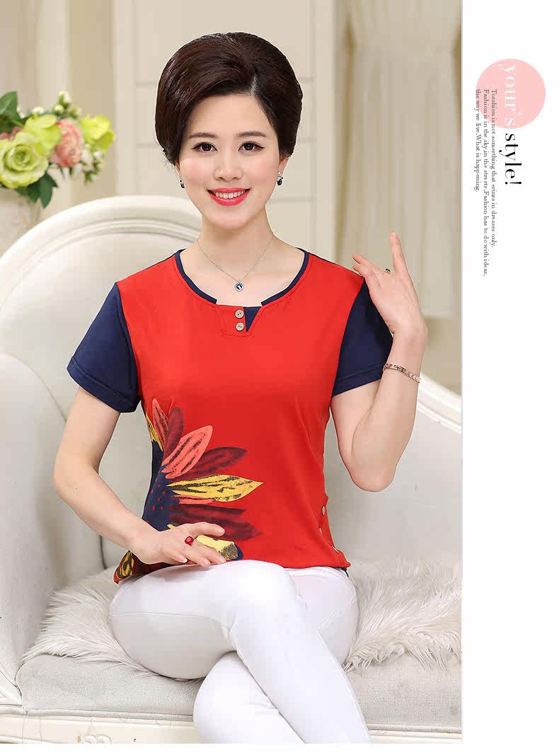 中老年女装夏装短袖T恤中年人女装夏季上衣40-50岁妈妈装夏季短袖