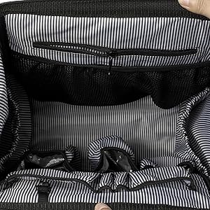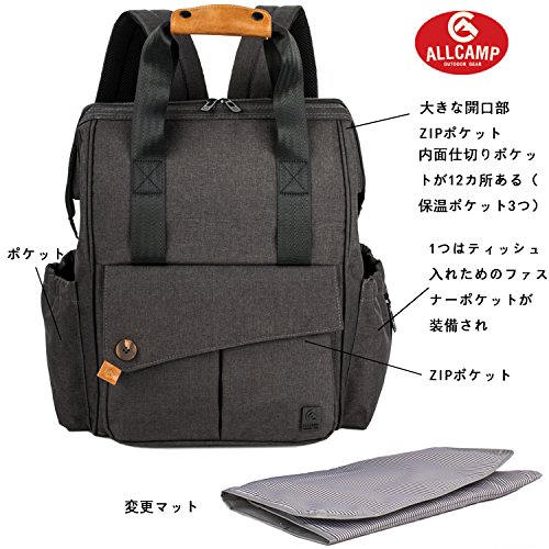 【ポケット】:内側:①層には内面仕切りポケットが12カ所ある(保温ポケット3つ)。②層には仕切りポケットが二つ装備される。外側:フロントZIPポケット、背中の後ろに隠れるZIPポケット | 両側のサイドポケット(1つはティッシュ入れためのファスナーポケットが装備され) | ※ご注意:素材感や色合いの表現には環境により色合いが異なる場合があります。 |
