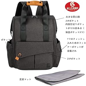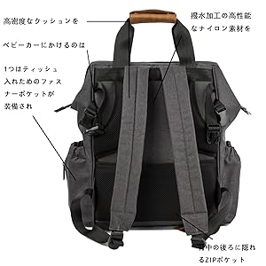 小さなお子様をお持ちのお父さん?お母さんに適なバックパックです。 どこでもおむつ替えができるオムツ替えパッドが付属します。