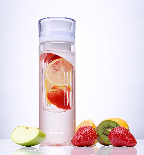 -. Binding : Sports -. Brand : Cupture -. EAN : 0642125802598 -. Feature : Use with or without the infuser. Twist on lid; screw on infuser / 24-ounce water bottle; fits most car cup holders / Constructed of unbreakable BPA Free TritanTM Material / Rinse & Reuse | Top-Rack Dishwasher Safe | Large Opening for Easy Filling and Cleaning / Fill With Liquid and Flavor Source of Your Choice, Close Lid, Shake and ENJOY! - Many Prepare and Leave Overnight in Fridge for Better Infusion -. Label : Cupture -. Manufacturer : Cupture -. MPN : sbf16-1w -. PackageQuantity : 1 -. PartNumber : sbf16-1w -. ProductGroup : Sports -. ProductTypeName : OUTDOOR_RECREATION_PRODUCT -. Publisher : Cupture -. Studio : Cupture -. Title : Cupture® White Fruit Infuser Water Bottle - Made of unbreakable Eastman Tritan(TM) - 24 oz -. UPC : 642125802598