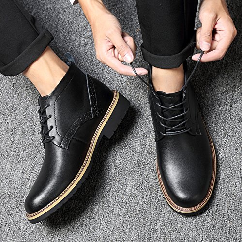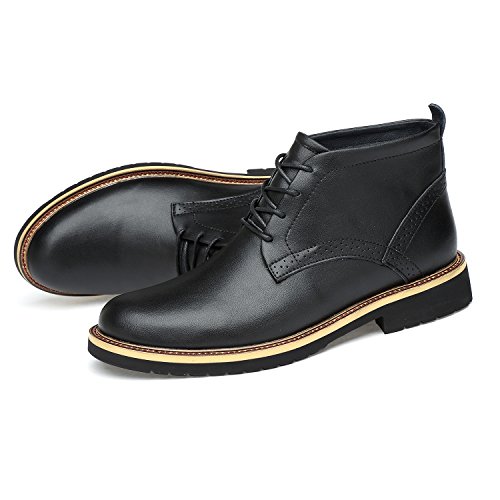 Binding : Apparel Product Description LessMore Men's Leather Classic Lace-up Chukka Boots, they are super stylish. Great with jeans! Or handle spring/autumn/winter weather. Look great dressed up or down, solid and grippy sole. A man must have one pair of them in your shoebox.