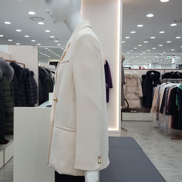 더블자켓으로 클레식한 스타일팬츠에 잘 어울림 허리라인이 없어편안한 스타일