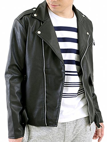 -. Title : ヘイオーシャンズ ライダースジャケット フェイク レザージャケット ダブルライダース ダブル 革ジャン ブルゾン アウター メンズ