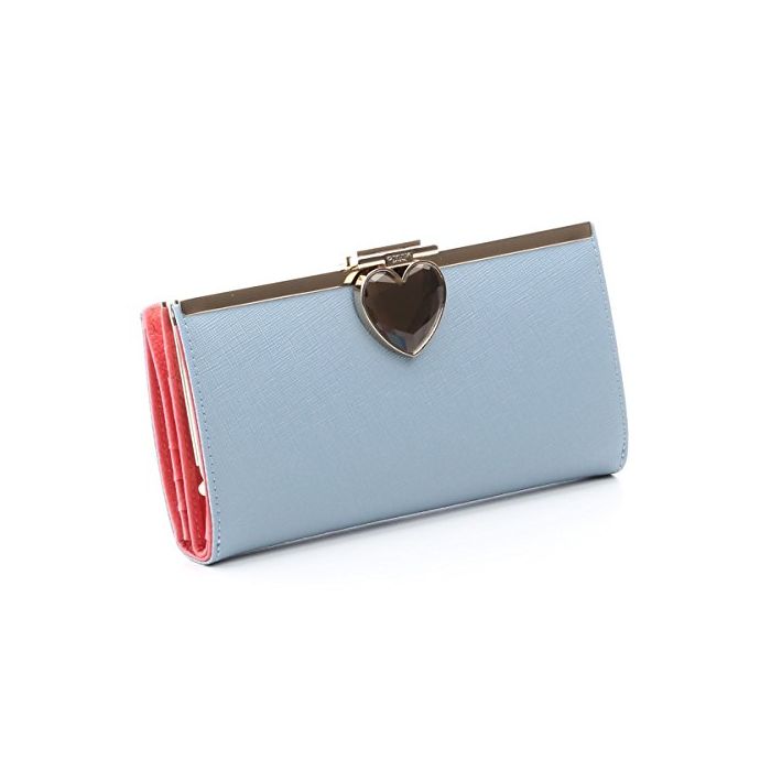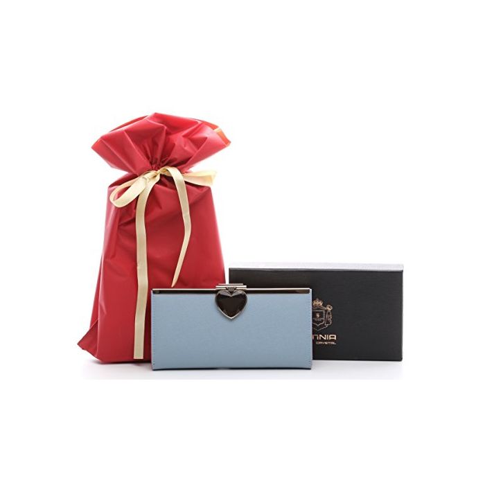 원본상품명: 【セット品】OMNIA オムニア ハトクリスタル 2つ折りサピアノ 長財布 本革 サイフ レディス かぶせ さいふ 二つ折り omnia crystal がま口(長財布、ラッピング袋) (ブル)