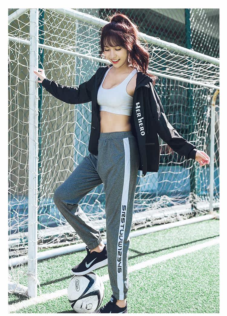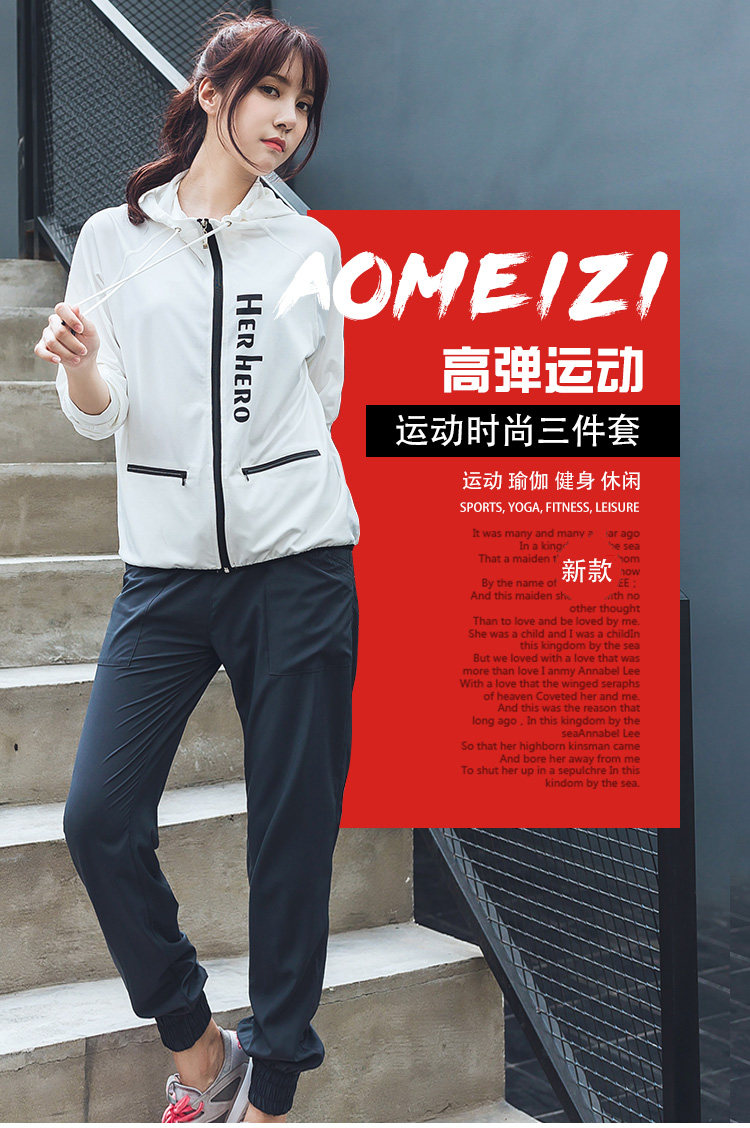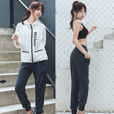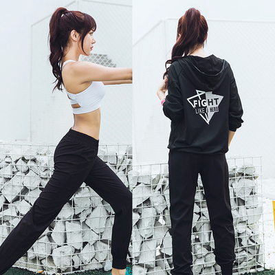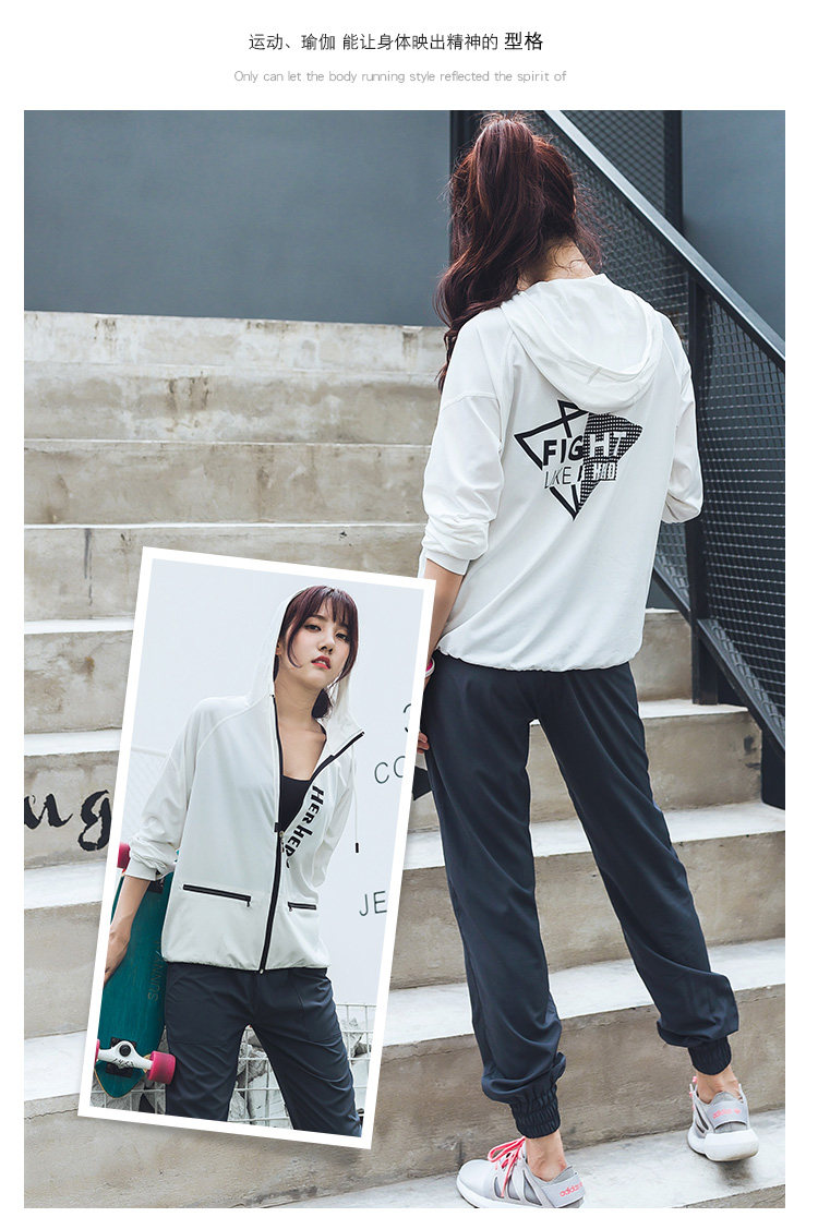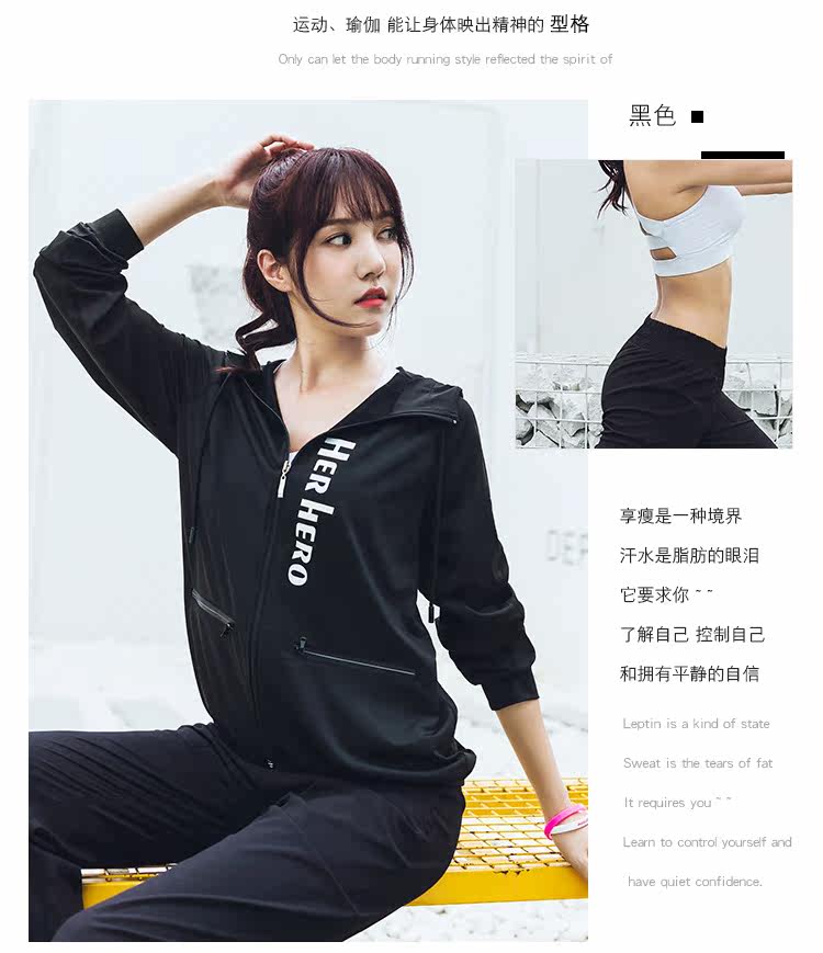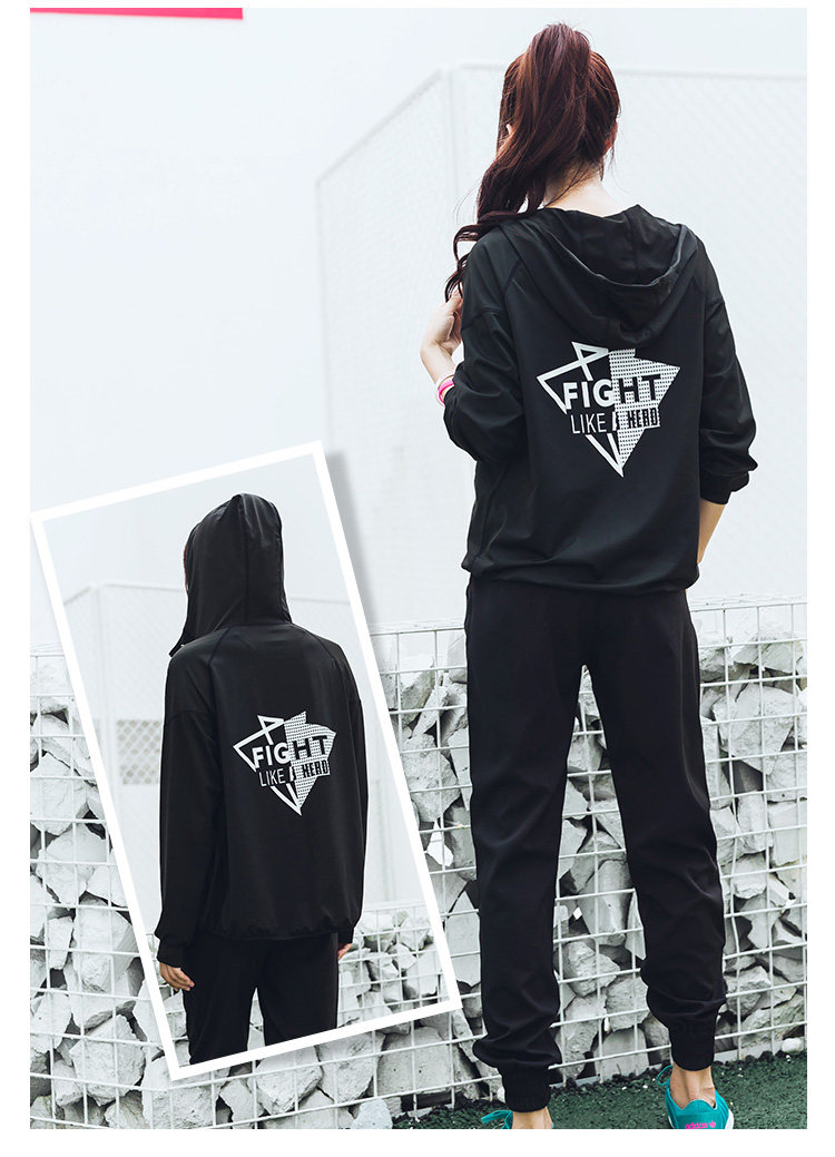 韩国秋冬健身服瑜伽服宽松显瘦速干连帽外套健身房跑步运动套装女