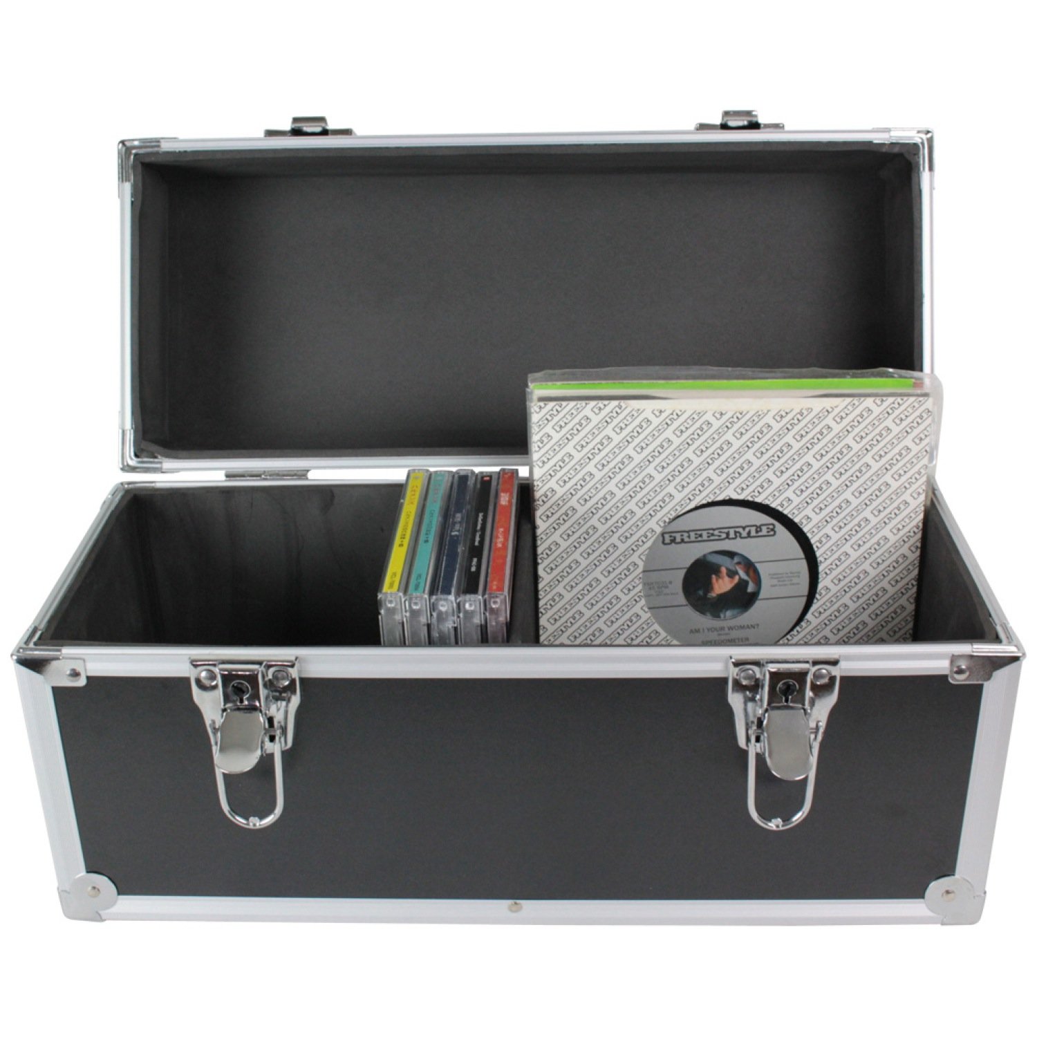 Because the inside is separated by two spaces, it is convenient to put accessories for CDs and DJ equipment as well as records.