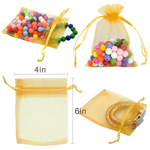 Rbenxia 100 Pcs Drawstring Organza Pouches 4 by 6 Inches Jewelry Favor Pouch Bags Wedding Party Festival Gift Candy Bag Color Gold