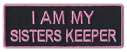 -. Title : Motorcycle Biker Jacket/Vest Embroidered Patch - I Am My Sisters Keeper (Black/Pink Design)