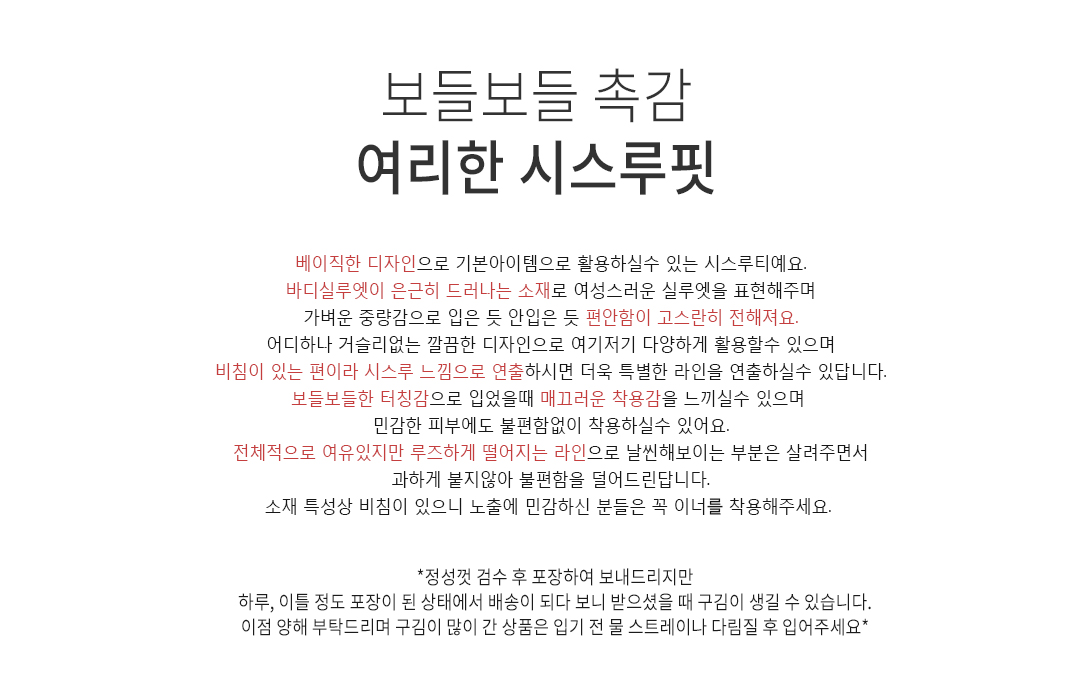 .같은 사이즈라도 체형에 따라 핏감이 조금씩 다를 수 있습니다.