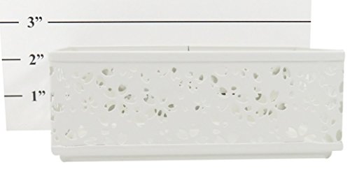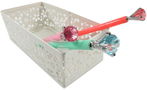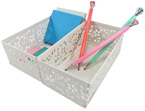 Metal Drawer Organizer Pencil Utility Holder Basket Rectangular Carved Flower Pattern 6.25 x 3.25 Inches White with Mechanical Pencils Diamond (Bundle of 2)