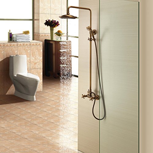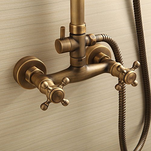 Lightinthebox®Two Handles Wall Mount Shower Faucet with 8 Inch Showerhead and Side Bar Handheld Shower Head with Shower Holder Shower Arm Chrome Unique Designer Vanity Antique Brass Rain Shower