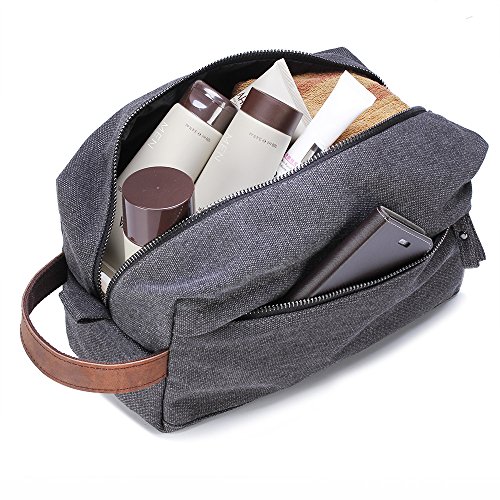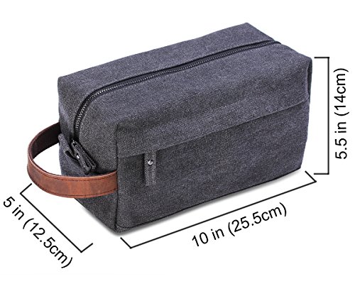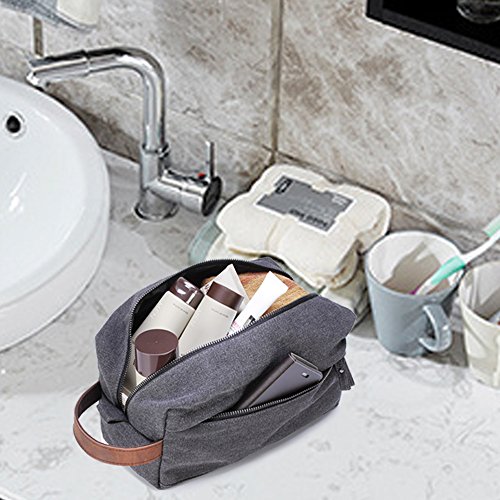- QUALITY MATERIAL: Lucky Rain premium canvas shaving kits bag is made of quality canvas fabric, the inner is seams with easy clean soft liner, onside genuine leather handle and smoothing zipper, durable and strong toiletries organizer.