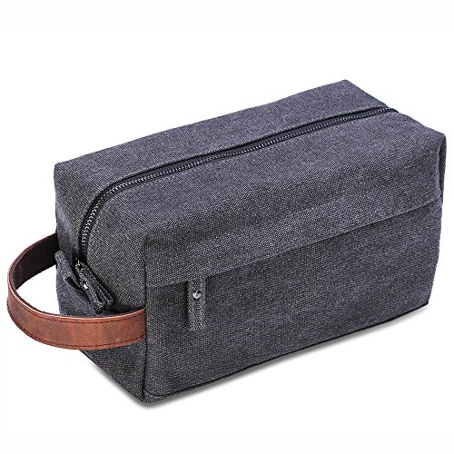 Lucky Rain Canvas Travel Toiletry Bag, Dopp Kits with Genuine Leather Handle