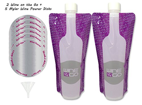 Flexible and Foldable Wine Bottles - Wine Bag Flask with Wine Pourers - 2 Bottles + 5 Wine Pourer Disks + Funnel