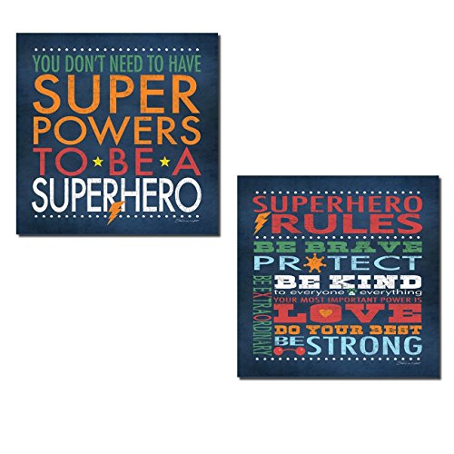 Popular Superhero Rules Set; Nusery or Child's Room Decor; Two 12x12in Prints