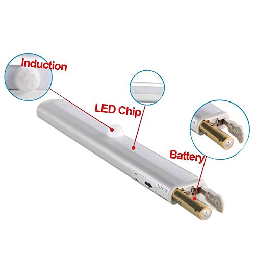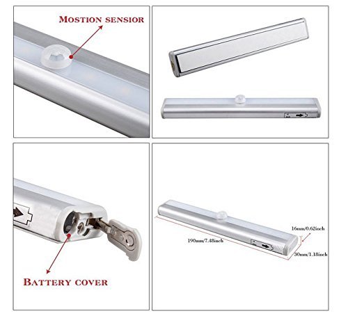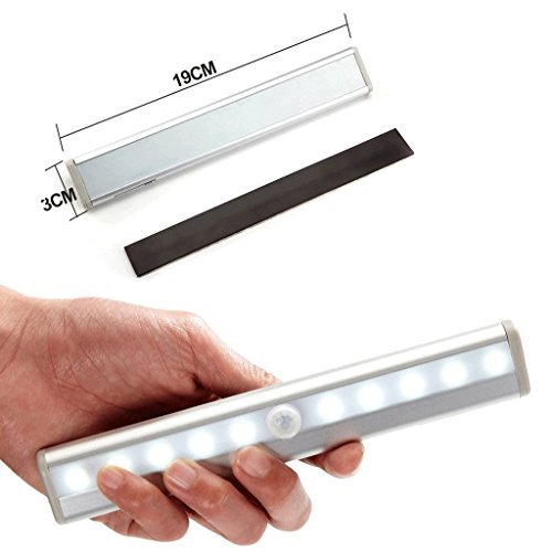 CUGBO 10 LED Night Light Battery Powered PIR Motion Sensor Light Bar with Stick-on Magnetic Strip for Closet Cabinet Wardrobe Stair