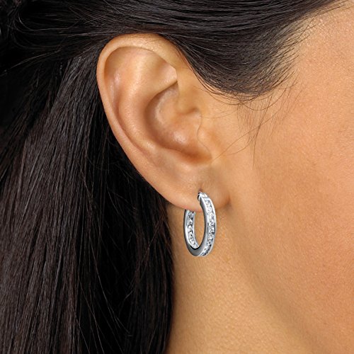 Presenting your favorite hoop earrings iced with channel-set cubic zirconia sparkle inside and out for timeless appeal. Platinum over sterling silver. - 45061