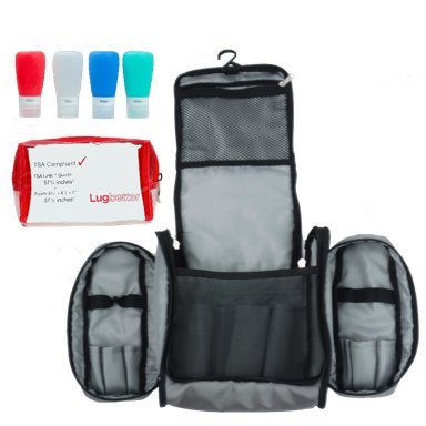Lugbetter Hanging Travel Toiletry Bag w/Removable Pouch and 4 Silicone Bottles: TSA-Compliant Toiletry Kit – Toiletry Case + Four 3-oz Bottles + 1qt Clear...