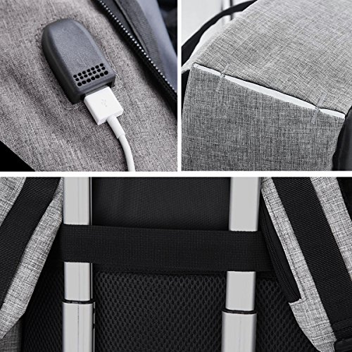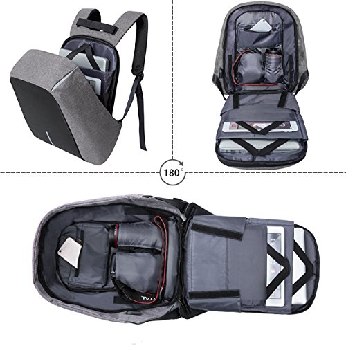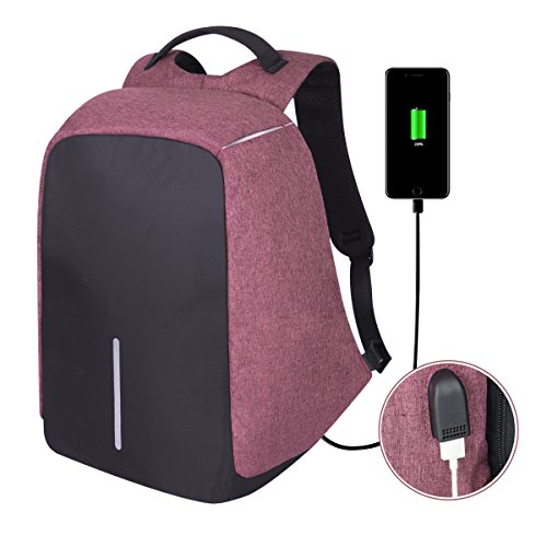 -. Feature : [ANTI-THEFT BACKPACK] : A hidden zipper and interlayer is fully covered in the back, external dimension: 17'' x 5.12'' x 12.6'' inches with dedicated Laptop compartment holds Laptops less than 15.6 inch, this design can protect your valuables in safety. / [USB CHARGING PORT] : External Micro-USB with set-in charging cable is convenient for your electronic device's use anywhere. And this bag do not include a battery, you need a power bank to charge it. Best gift for Thanksgiving and Christmas. / [WATER RESISTANT NYLON & OXFORD] : Outer selection of 600D fabric, 6MM anti-collision sponge layer. This fashion backpack is made of durable waterproof and dust proof nylon and oxford fabric to guarantee the quality, perfectly protect your items from rain, easy to clean up / [ELASTIC BELT & NIGHT SAFETY BACKPACK] : Back elastic belt let you insert the backpack into carry-on luggage, hands free for traveling. Journey convenience! There is a refelctive stripe on the front of the bag which makes this backpack more conspicuous in the night / [GUARANTEE]: Our 30-Day Money Back Guarantee. If any quality problems with your backpack, please contact us and we will solve it as quickly as we can