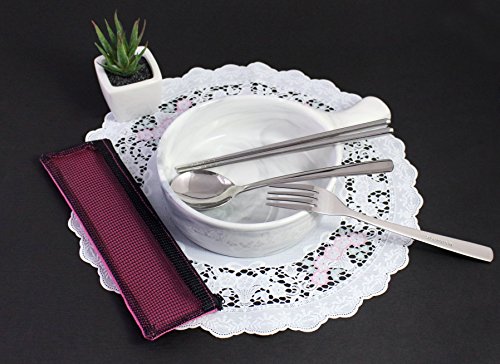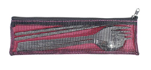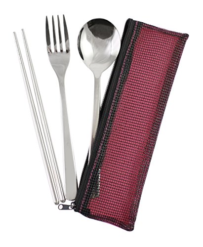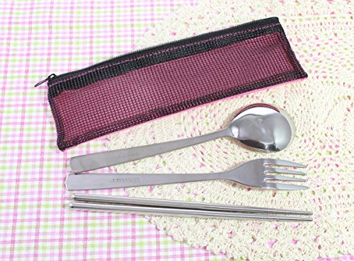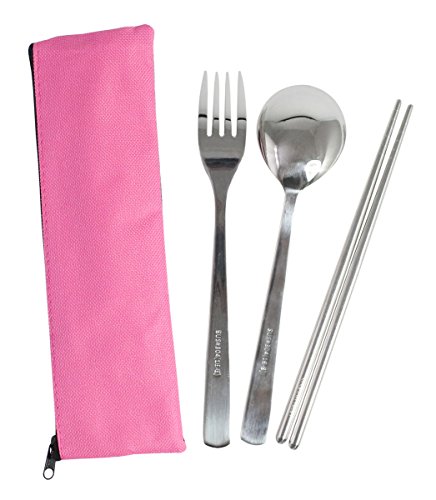 Modern Elegant Travel Stainless Steel Tableware set of 3 items (Fork, Spoon, Chopsticks) with Case- Pink