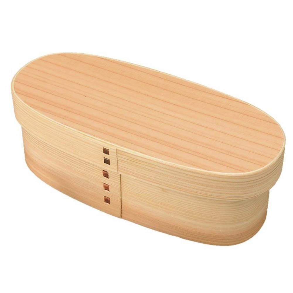 曲げわっぱ弁当はご飯の水分を程よく吸収し、冷めても美味しく、使い込むほどに風格が増していきます。天然杉のほのかな香りが心地よいお弁当箱です。 |
