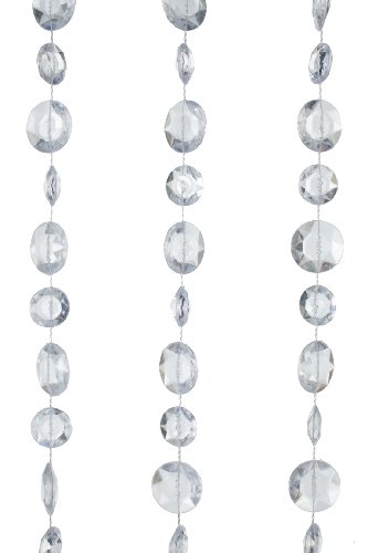 This awesome beaded curtain features large faceted beads. This crystal clear non-iridescent color has NO pearly top-coat on the beads. So the bead really is perfectly crystal clear. Our beads are ACRYLIC. Not cheap ugly plastic! There are 18 Strands, but with the beads being large, you get a pretty significant looking curtain! The strands are all hanging from one white rod with 2 metal eyelets at the top. You just hang those eyelets on a nail or 2 c-hooks and you're done! Use our beaded curtains in windows, in doorways, as set decorations, as photo backdrops, on blank boring walls, as room dividers. The possibilities are endless! Each "Diamante Duo" curtain alternates between two bead sizes all the way down the strand: XLarge Diamante 3/4", Large Diamante 1/2" Each Beaded Curtain measures 3 feet wide, 6 feet long. ShopWildThings is a premier supplier of high quality Event and Wedding Decor. We supply private parties, large corporate companies such as television studios and theme parks, party planner and home-use consumers. Our specialty is custom fabrication for large venues. If you can dream it up, we can help make it happen on -time and on-budget. We have been in business since 1989 and have built a great reputation built on Excellent Customer Service, High Quality Merchandise, Timely Shipping and the desire to be your problem solving partner.Feature