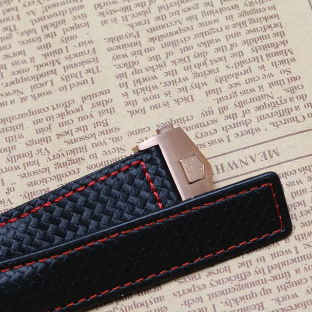 | [해외] 탄소 섬유 손목 + 정품 가죽 레드 스티치 rosegold 버클 20 미리메터 22 미리메터 블랙 시계 액세서리 팔찌 시계 스트랩 밴드 |