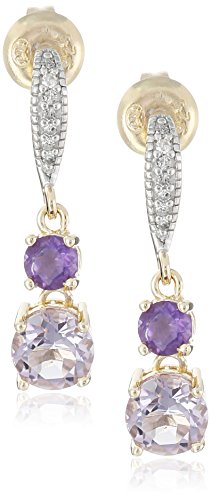 Gold over silver tonal amethyst and diamond accent drop earrings
