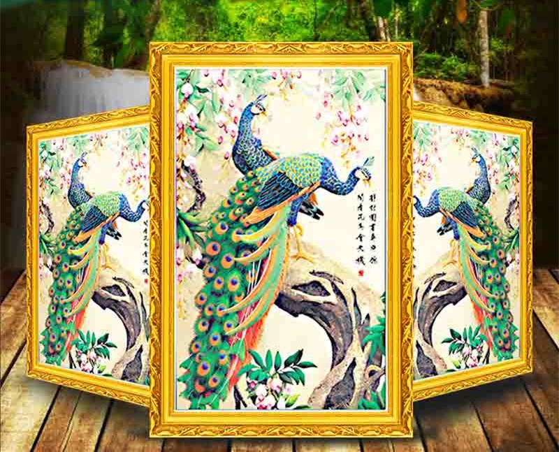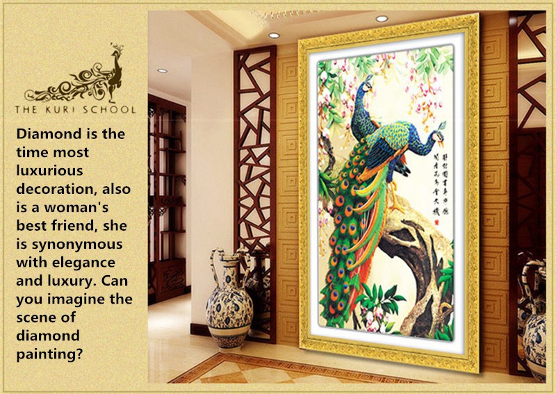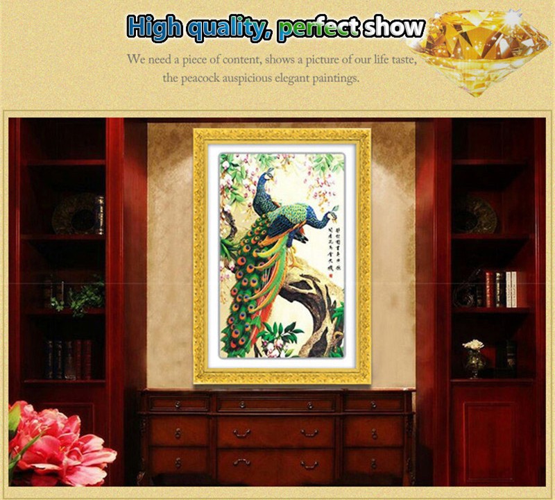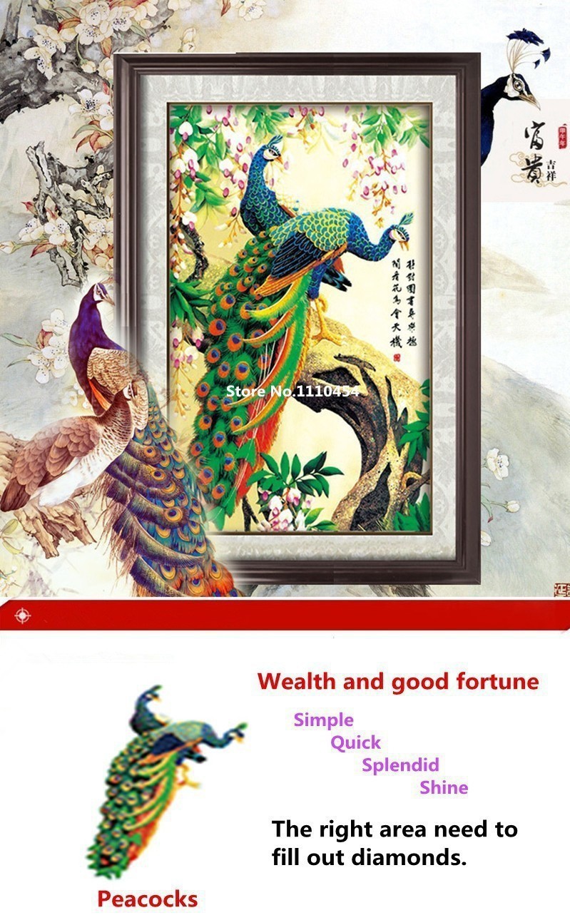 YGS-26 DIY 5D Diamond Painting Cross Stitch Round Diamonds Embroidery Peacock wealth and good fortune Diamond Mosaic Home Decor