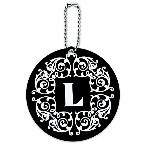 (Graphics and More)/Accessories/Luggage, Bags Travel/DIRECT FROM USA/Letter L Initial Black White Scrolls Round Luggage ID Tag Card Suitcase Carry-On