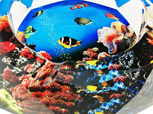 -. Title : Beautiful Colorful Pattern Transparent Octangle Shape Diameter 3.9" Cigar Cigarette Crystal Glass Ashtrays With 4 grooves Home Office Tabletop Desk Decoration Father's Day Gift (Ocean World)