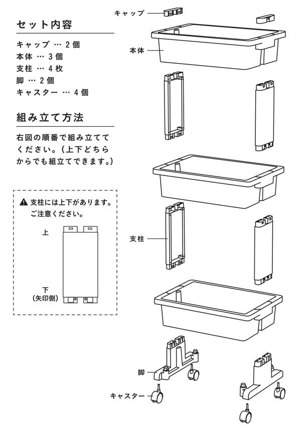 | 素材・材質 | 本体・支柱・脚・キャップ:ポリプロピレン キャスター:ポリプロピレン(鉄芯入) |