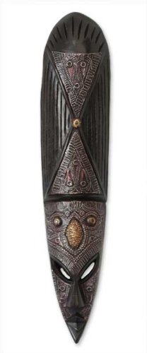 NOVICA Decorative Ghanaian Large Sese Wood Mask, Black 'Wa Iron Warrior'