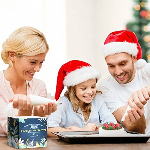Russian Piping Tips Set 56pcs-33 Icing Frosting Nozzles(2 Leaf Tips 2 Large Ball Tips 2 Rose Tips)+ 2 Couplers + Silicone Bag + 20 Cotton Bag + Gift Box For Cake Cupcake Decorating Supplies Kit
