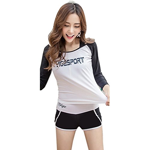 -. Feature : ラッシュガード+ブラ+ショートパンツ 3点セット / シンプルスポーティー大人フィットネススタイル / 切り替えバイカラーがきゅっと引き締め☆ 選べる半そでor長そで着やすく日焼け対策♪ / お腹をしっかり隠して気になる体型をカバー◎ ショートパンツスタイル動きやすさがGOOD! / 後悔しない水着をお探しならコレで決まりだネっ☆