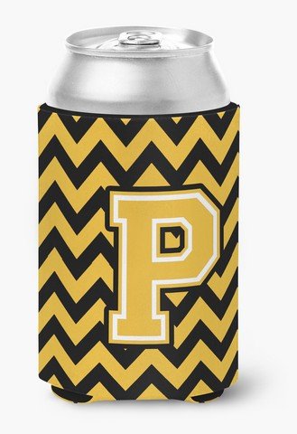 Caroline's Treasures CJ1053-PCC Letter P Chevron Black and Gold Can or Bottle Hugger, Multicolor