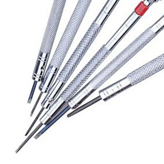 6pcs Professional Watch Jeweler Eye Glasses Flat Blade Head Tip Slotted Screwdriver Repair Tools