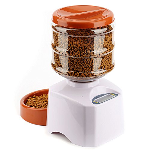 Studio : Gosear Publisher : Gosear Binding : Misc. Product Description Instructions: Install the battery and turn on the power switch. 1. Set the time Press "SET" key for 3 seconds,"HOUR" key flash, press "UP" key to set the hour, then press "OK" to confirm, "MINUTE" flash, press "UP" key to set the minutes, "OK" to confirm, the time is set. 2. Set the number of meals, meal time, meal weight Afte setting time, "MEAL"flash, set the number of meals, press"UP" key, select 1, 2, 3 (1 for lunch only, 2 for breakfast and dinner, 3 for three meals), "OK" key to confirm, then automatically turn to the choice of meal time. If you choose 3 meals,"BREAKFAST TIME" flash, confirm time(5:00-11:00AM), then"PORTION" flash, press"UP" key to choose dining weight(1-12), "OK" key to confirm. Lunch and dinner operation are as above. Recording playback settings: Press and hold the "REC" button for 3 seconds to hear a "beep" sound and start recording (up to 10 seconds), and hear the "beep" again to end. Press and hold the PLAY button to play the recording. Specifications: Material: ABS plastic Capacity: 5.5L Meal size: 1 to 12 cups Size: 39 x 23cm(L x W) Bowl size diameter 21cm Storage barrels size: 21 x 20cm(Dia x H) Power: 3 x D-size batteries (NOT INCLUDED) Capacity: 5.5L Color: White Package: 1 x Automatic Pet Feeder Note: 1. Do not clean the main body in the water to avoid damage the electronic components 2. Suitable for pets over 3 months 3. Do not use rechargeable batteries 0