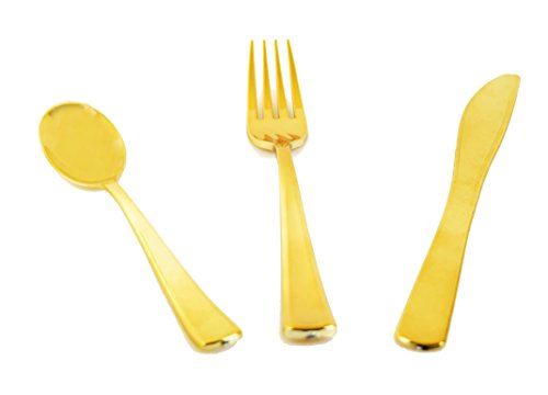 Studio : Green Direct Publisher : Green Direct Binding : Misc. Product Description Gorgeous Gold glitz plastic cutlery set! the one that looks and feels like real ones perfect to beautify your table at any modern event! the durable character of the flatware gives it a professional look and it will not break like any other brand. Serve it at any occasion to ensure a "magnificent" event and no after party work washing away your dishes! these beautiful Gold cutlery are the perfect match for each and every occasion from the most simple gatherings to the most fancy and upscale events. It will always surely enhance and beautify your table. Combine it with the Green Direct excellent, fashionable white, square 6.5, 8,and 9.5 inch plates for the most beautiful results. So stock up on them and you will always be impressed by it and never Believe it's not real. 0