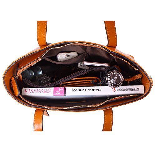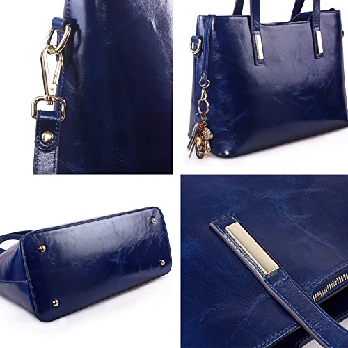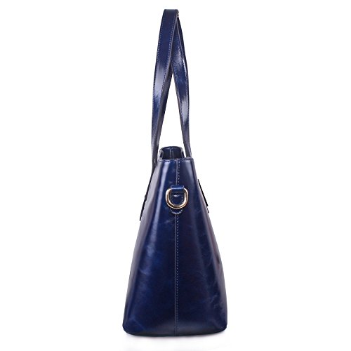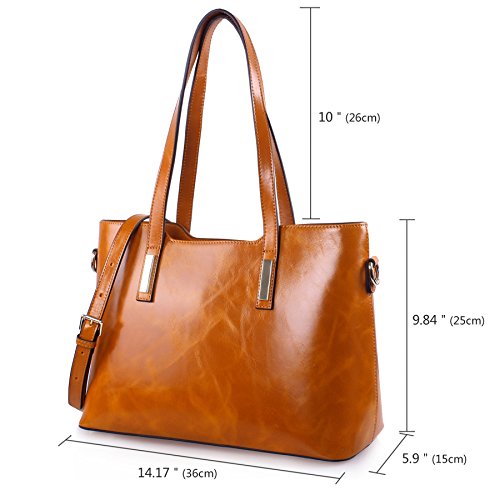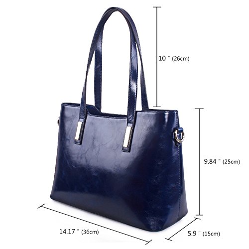 -. Feature : Material:Genuine Leather, (Top grain oil wax leather). We're using High quality luxury soft leather and with luxury durable fabric lining , Classic gold hardware and metal rivet protect on bottom. / Top zip closure. Give your look an edgy and endearing appeal, perfect for the fashionista on the go. / With 2 roomy inside pocket,Handbag pocket features a key fob, 1 phone pocket, 1 credential pocket,1 An inner wall zip pocket. and 1 zippered pocket in the back. Comfortably holds an iPad, iPad Mini, other tablet or a laptop 12" and under, A4 magazine, portable textbooks, clothing, wallet, cell phone,Cosmetics and other daily necessities. / Product dimensions : 14.17 " * 5.9 " * 9.84" inches ,and a single shoulder strap(10" H inches), Net weight: 2.0pounds. Removable and adjustable shoulder strap length. Long shoulder strap length:41.3"-48"inches. You can have 3 carrying options (Single shoulder,Messenger and hand carry). / The handbag appearance concise and atmosphere, powerful, Made of soft leather and handmade. good choice for traveling and dating. We have 3 colors, all kind of colors are beautiful noble and stylish. which suitable for you shopping, gathering, travelling, working.
