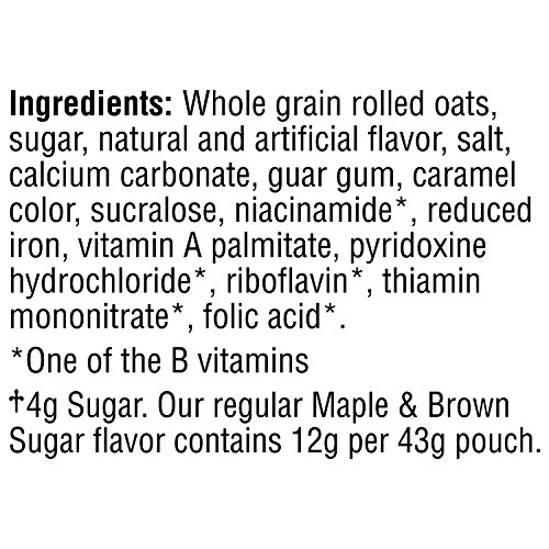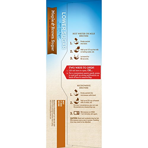 -. Feature : The classic sweet flavors of maple and brown sugar / 50% Less Sugar than regular Maple & Brown Sugar Quaker Instant Oatmeal / Heart Healthy Whole Grains (*Diets rich in whole grain foods and other plant foods and low in total fat, saturated fat, and cholesterol may reduce the risk of heart disease.) / Quaker Instant Oatmeal is made from 100% whole grain Quaker Oats / Convenient single-serving packets are ready in 90 seconds